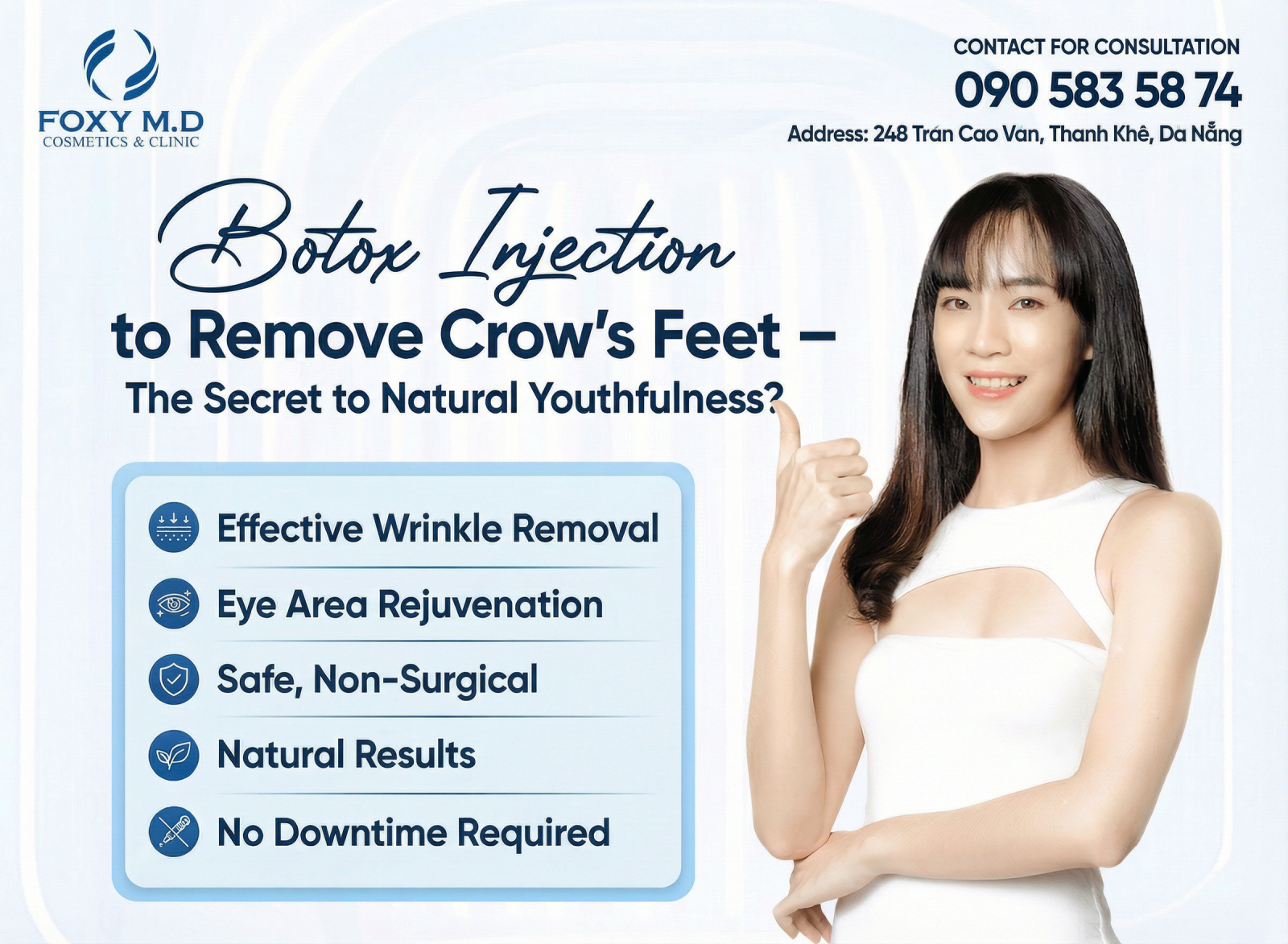 In short, understanding botox injections for crow's feet—the secret to natural youthfulness—is an important step in mastering your beauty. Wrinkle-free eyes will bring great confidence in communication and help your face always radiate positive energy.